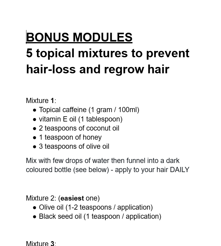 ✅Bonus #1: 5 topical mixtures to prevent hairloss and regrow hair ($154 Value)